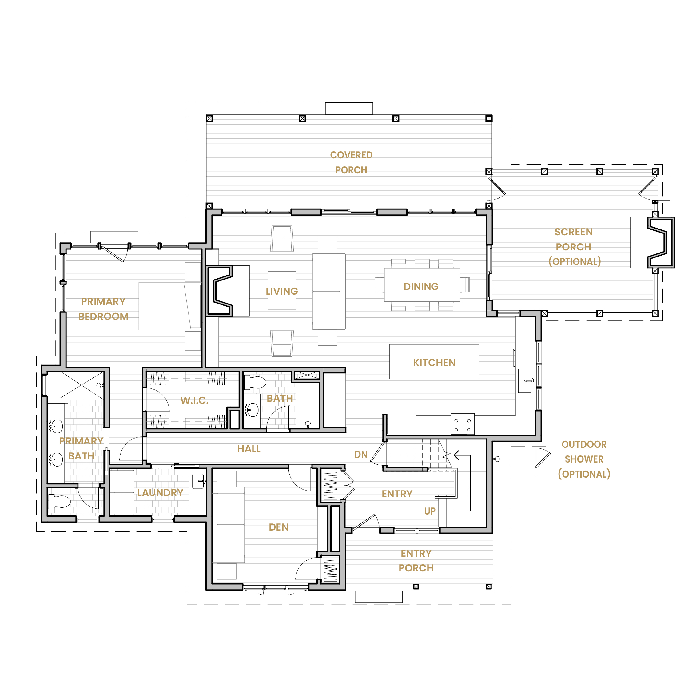 Our predesigned homes start from your desired base model, but no two are built exactly alike. Your selections provide you with a unique, individualized home. Predesigned homes can be personalized within the footprint to fit your needs and lifestyle. Clients usually retain most of the preselected finishes and modify a few elements, such as decorative lighting or plumbing fixtures, to better align with their personal style. In addition, several predesigned homes have standard options such as adding a screen porch or a fireplace, available at an additional cost.